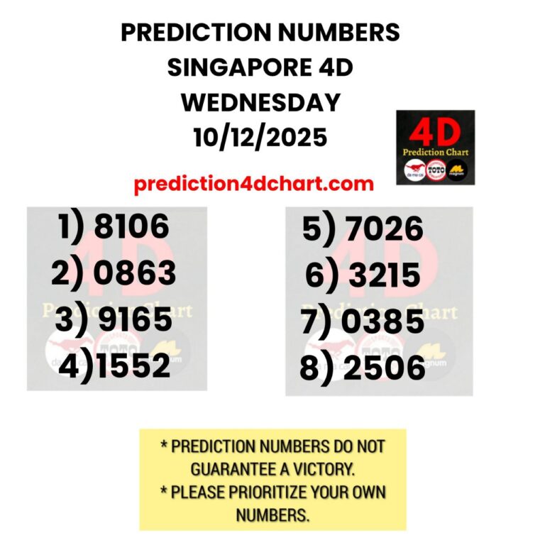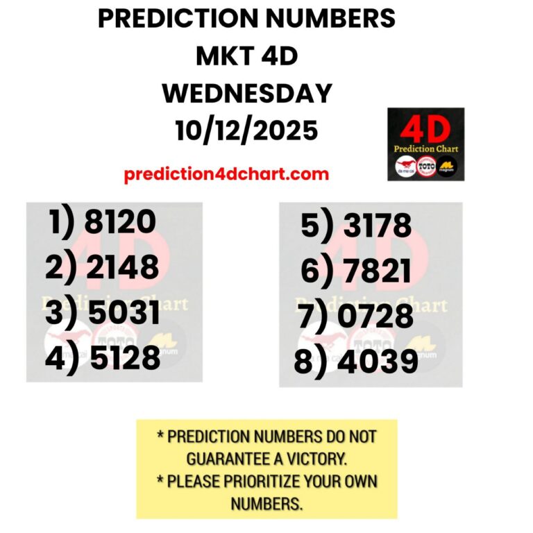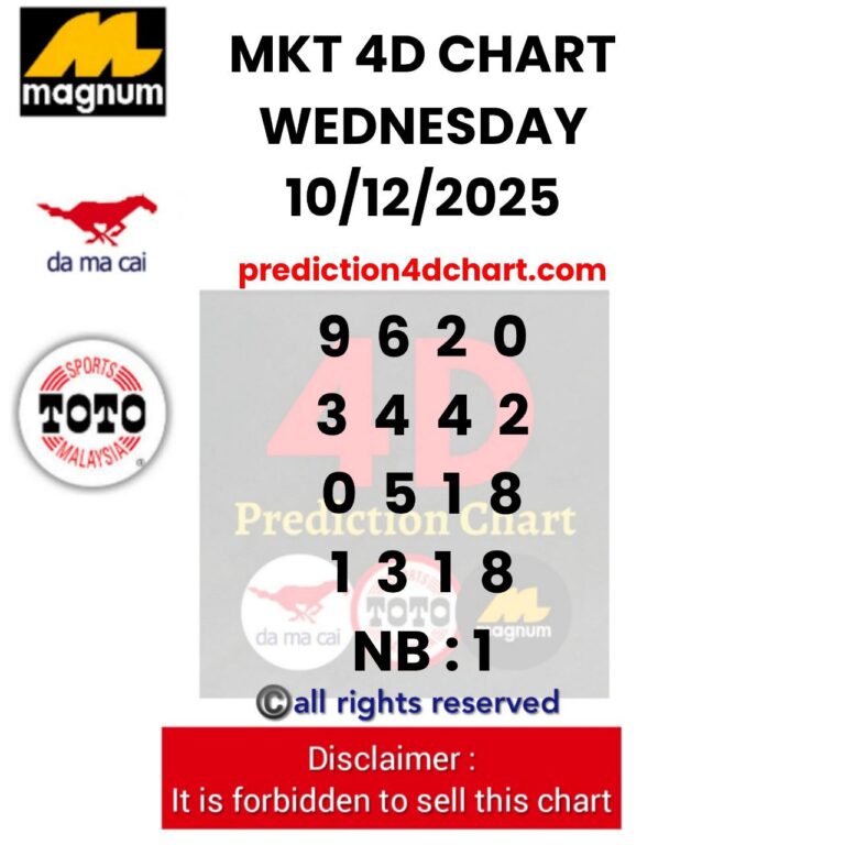 MKT 4D & SINGAPORE 4D KEPADA FOLLOWER PREDICTION 4D CHART Pihak kami ingin meminta maaf, homepage kami telah mengalami masalah di mana kami tidak dapat masuk untuk edit bahagian tersebut. Terima kasih kerana masih bersama dengan kami. MKT 4D CHART 10/12/2025 SINGAPORE 4D CHART 10/12/2025